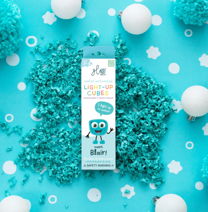 Includes: 4 x Blair Blue Glo Pals® Light-Up Cubes in a box.