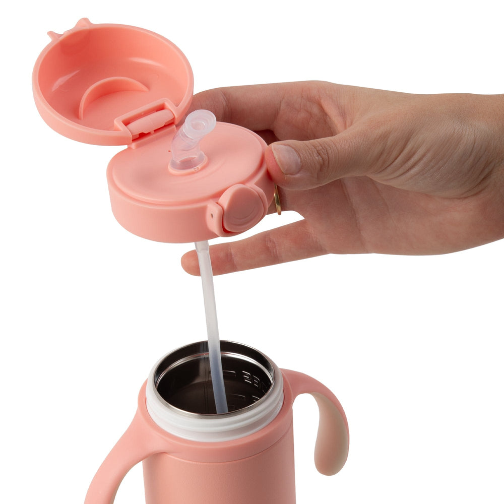 *When using this product, only biting on the straw will allow liquids to pass through. The straw is designed to be both gentle on young mouths and strong enough to endure biting from tiny teeth.