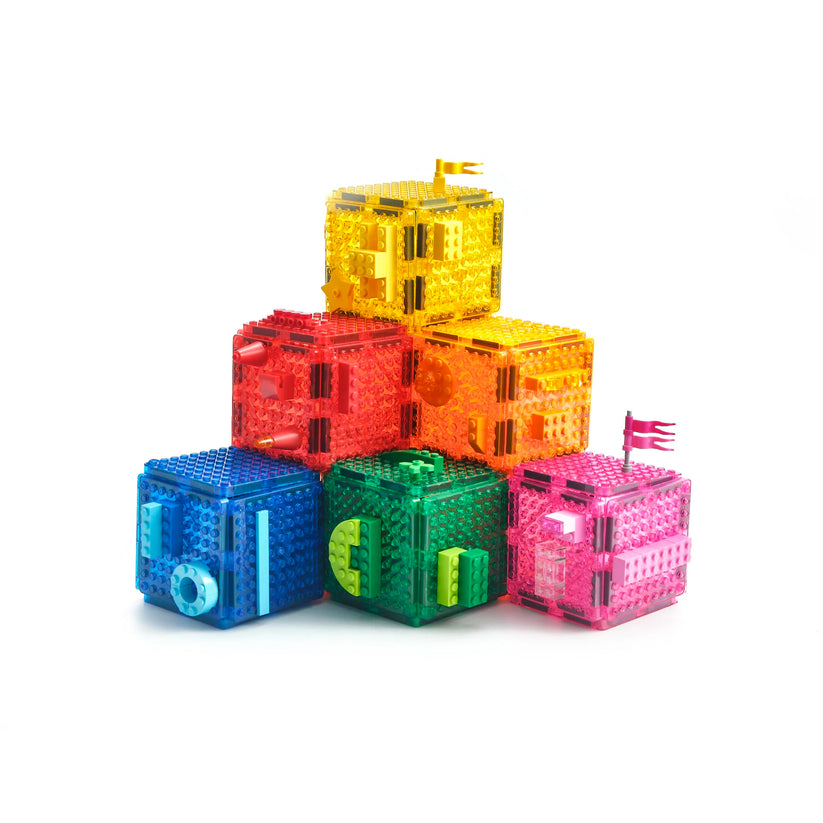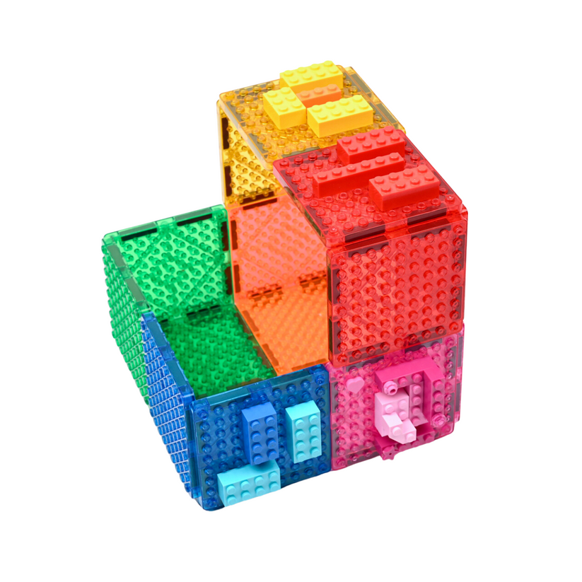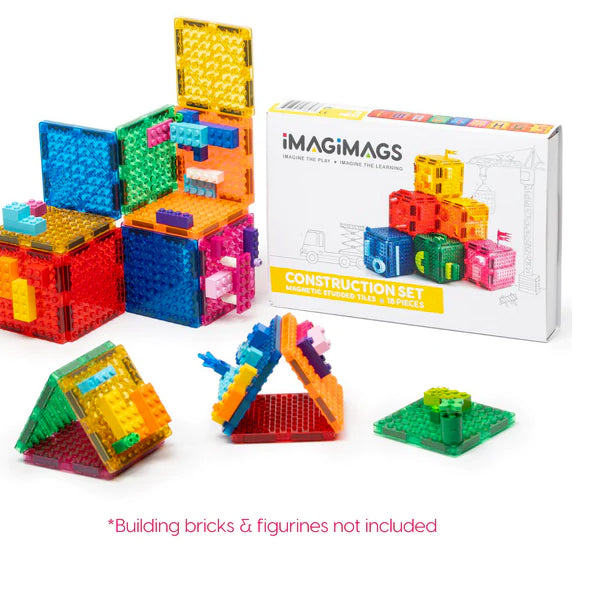 Integrate your two favourite construction toys - building bricks and Imagimags! The Construction Set tiles have building brick-compatible surfaces.