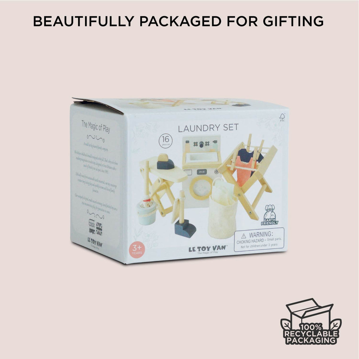 Washing laundry and cleaning a dolls house just got a whole lot more fun with this sweetest Laundry Room set. Crafted from FSC® - certified wood, this delightful 16-piece set makes a wonderful addition to small world play.
