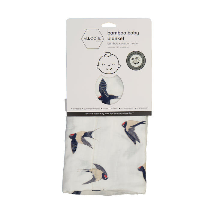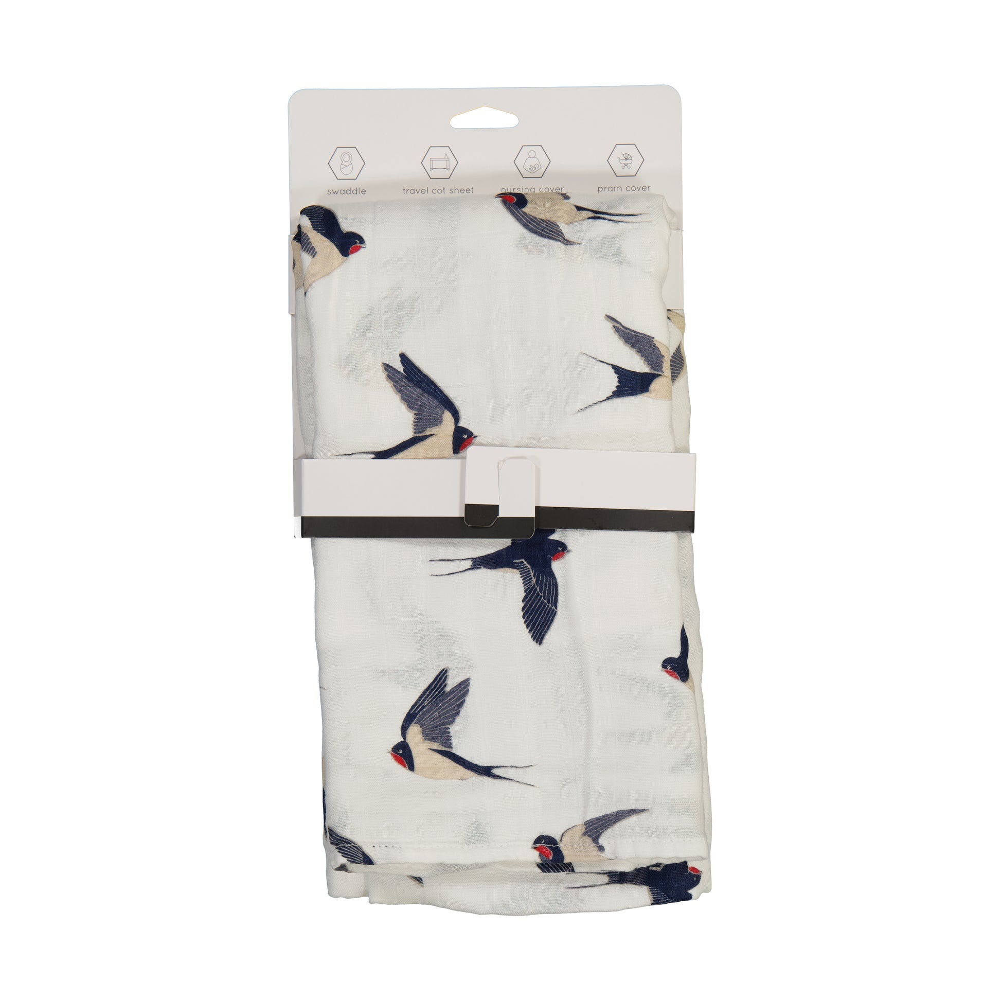 MACCIE bamboo muslin swaddle baby blanket l swopping swallows