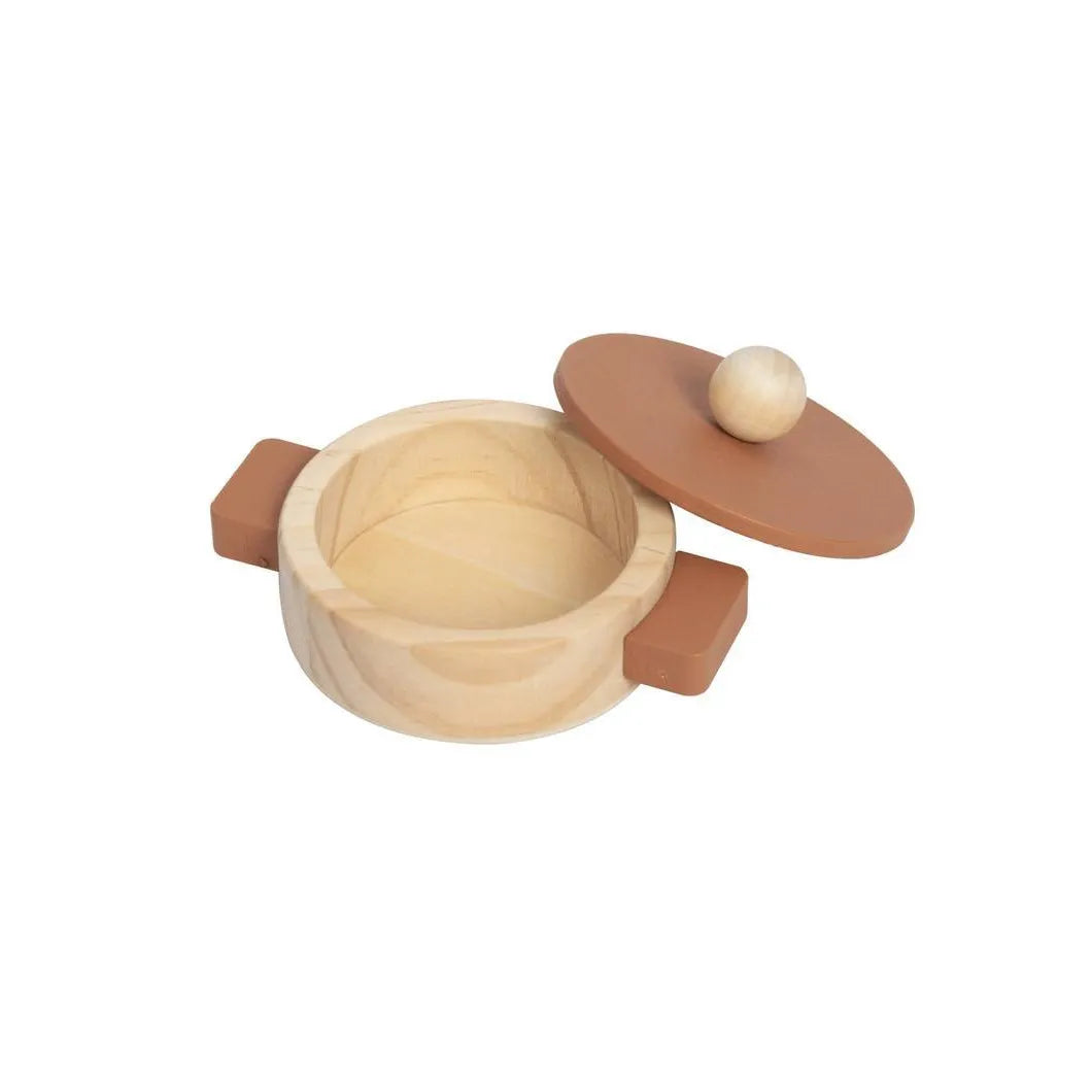 This lovely cream wooden kitchen set comes with a pot, pan, basin, salt and pepper shakers, and three cooking utensils. Made of FSC certified wood and non-toxic paints.